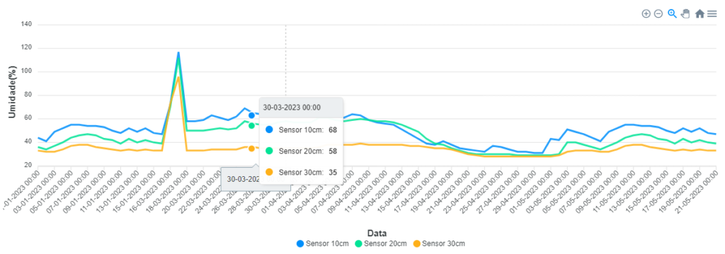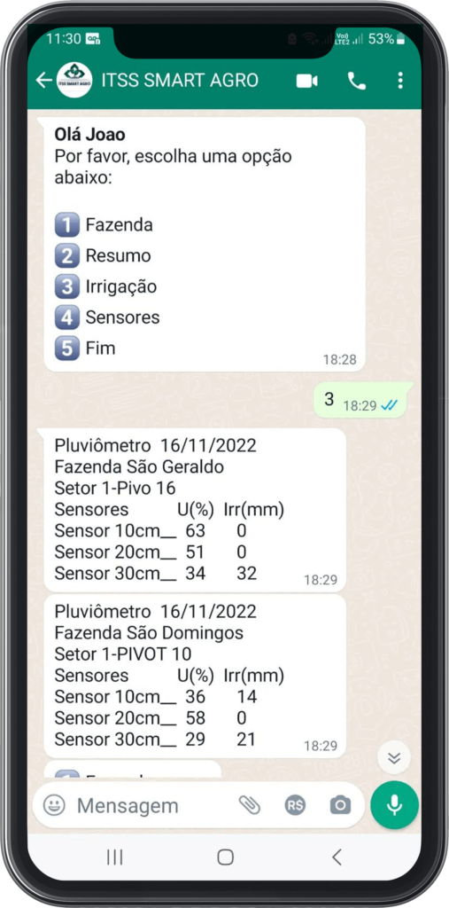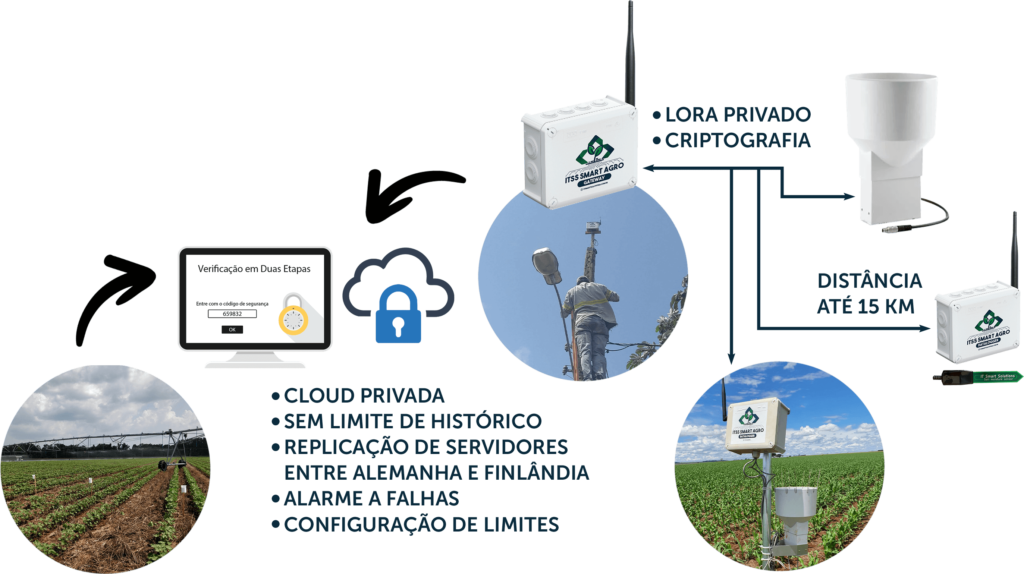 Todos os dados são criptografados e enviados para a plataforma ITSS Smart Agro, permitindo ao agricultor o acesso remoto em qualquer lugar e horário, possibilitando a análise de seus dados e downloads.